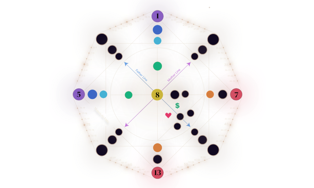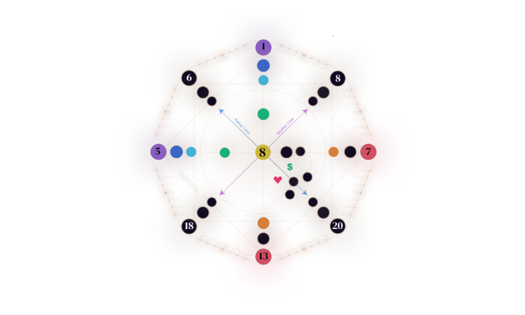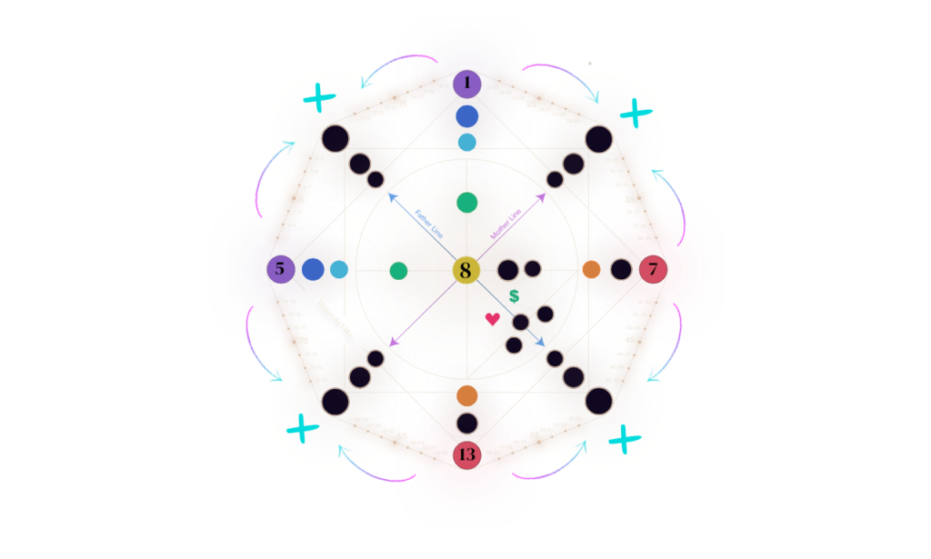 The matrix also reveals unresolved ancestral issues. Working through these energies allows a person to unlock additional resources and improve both personal destiny and the destiny of the family line.